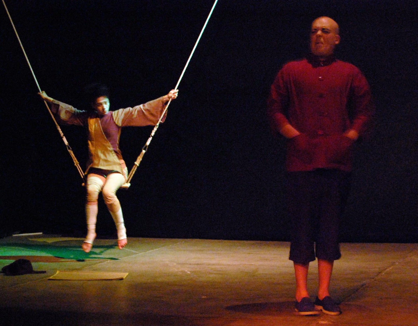 Utiliza elementos de teatro aéreo y un trabajo actoral limpio donde conjuga, texto, música, actuación, discurso en una hermosa creación de alto nivel.